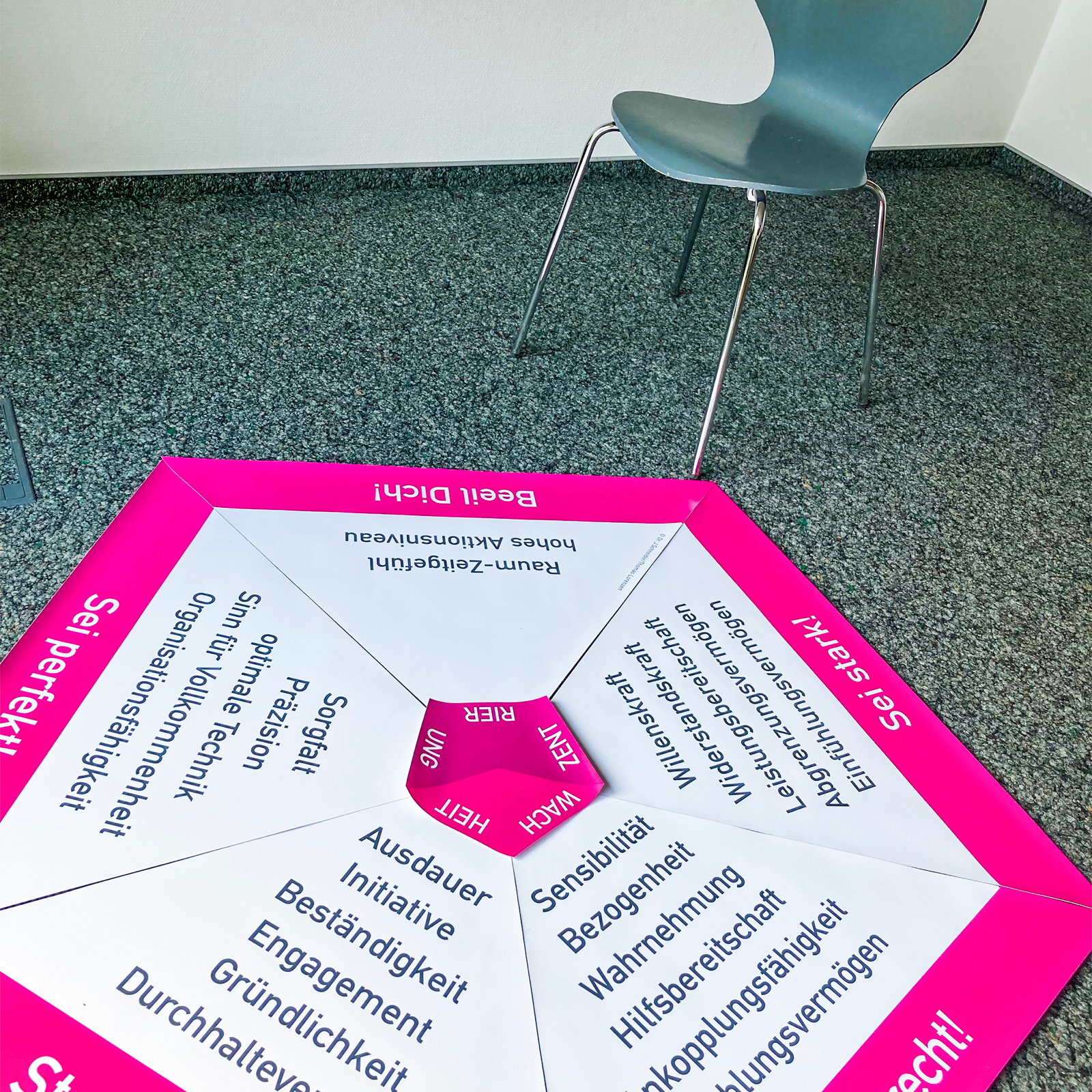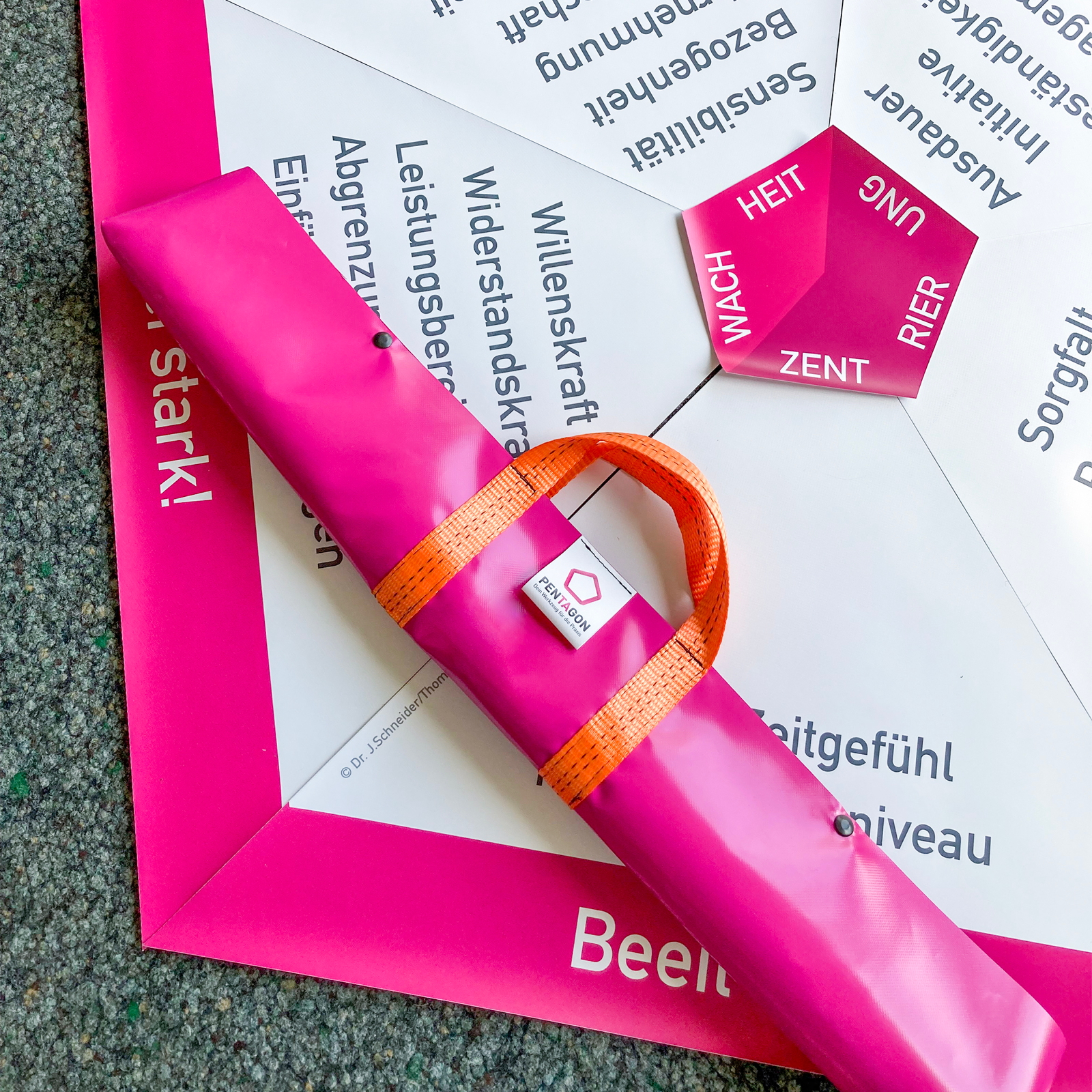 Lehre mit Deinem praktischen PENTAGON im Großformat: Wir produzieren auf Spezialplane; damit bleibt es handlich, leicht und flexibel. Es ist perfekt geeignet für Workshops, Praxisräume und auf Reisen.
